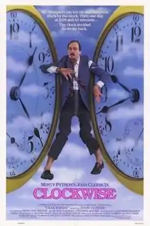 Clockwise is an absurdist 1986 British comedy road film starring John Cleese, directed by Christopher Morahan, written by Michael Frayn and produced by Michael Codron. The film's music was composed by George Fenton.