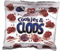 Clodhoppers are crunchy, fudge-covered graham clusters. They were originally discovered and marketed by the Kraves Candy Co., located in Winnipeg, Manitoba, Canada.[1] In 2006, the brand and recipes were sold to Brookside Foods, who were in turn sold to Hershey's in 2011.