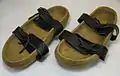 The origin of wooden footwear in Europe is not precisely known. De Boer-Olij makes reference to the high, thick-soled boots of the Greek tragedy actors in Antiquity (the buskin) and to the shoes worn by Roman soldiers (the caligae).[5] However, there is a possibility that the Celtic and Germanic peoples from Southern and Northern Europe were familiar with some sort of wooden foot covering. Archaeological finds of these are not known. Wooden footwear often ended up as firewood and, because of its nature, wood will rot away in the long run. The oldest surviving wooden footwear in Europe is found in Amsterdam and Rotterdam, the Netherlands, and dates from 1230 and 1280.[6] These finds look very similar to the wooden shoes that are still worn in the Netherlands.