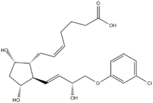 Cloprostenol is a synthetic analogue of prostaglandin F2α (PGF2α).[1] It is a potent luteolytic agent; this means that, within hours of administration, it causes the corpus luteum to stop production of progesterone, and to reduce in size over several days.[1] This effect is used in animals to induce estrus and to cause abortion.[2]