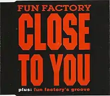 "Close to You" is a Eurodance song by German band Fun Factory. It was released in March 1994 as the second single from their debut-album, NonStop (1994), and peaked at number-one on the Canadian RPM Dance/Urban chart and at number 22 on the Billboard Hot Dance Club Play chart in the US. Additionally, it peaked at number 46 on the Billboard Hot 100. In Europe, it reached number 19 in Germany and number 97 in the UK. It uses the same melody as the 1993 hit single "Hold On" by German group Loft.[1]