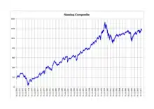 This article is a summary of the closing milestones of the Nasdaq Composite, a United States stock market index. Since first opening at 100.00 on February 5, 1971, the Nasdaq Composite has increased, despite several periods of decline, most recently after the financial crisis.