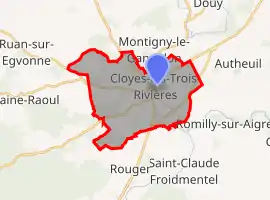 Cloyes-sur-le-Loir (French pronunciation: [klwa syʁ lə lwaʁ], literally Cloyes on the Loir) is a former commune on the River Loir, a few kilometres south of the town of Châteaudun in the department of Eure-et-Loir in northern France. On 1 January 2017, it was merged into the new commune Cloyes-les-Trois-Rivières.[2]