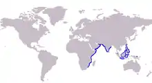 S. chondropus ranges from South Africa, northward along the west African coast to Pakistan, India,[4] Myanmar, Indonesia, northern New Guinea, Thailand, Philippines and Taiwan. It has never recorded from southern New Guinea or Australia.[3] The species inhabits shallow coastal waters, from depths of 0 to 5 m. In eastern Taiwan, blackish substrates with a strong current and wave action are inhabited,[5] while in India it has been known to enter estuaries.[6] The reduced swim bladder and modified pelvic fin indicates that this species is demersal and may use the pelvic fin pads somewhat like sled runners on the substrate.[3]