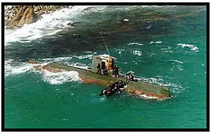 A coastal submarine or littoral submarine[1] is a small, maneuverable submarine with shallow draft well suited to navigation of coastal channels and harbors. Although size is not precisely defined, coastal submarines are larger than midget submarines, but smaller than sea-going submarines designed for longer patrols on the open ocean. Space limitations aboard coastal submarines restrict fuel availability for distant travel, food availability for extended patrol duration, and number of weapons carried. Within those limitations, however, coastal submarines may be able to reach areas inaccessible to larger submarines, and be more difficult to detect.