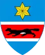 Slavonia – Coat of arms of Slavonia: Bleu celeste, a fess Gules fimbriated Argent surmounted by a mullet of six points Or, a marten Sable courant proper in chief – Six-pointed star (morning star) above two silver stripes on a blue shield (representing the rivers Drava and Sava marking the Northern and Southern border of Slavonia), between them a running Pine marten in natural colors (Kuna in Croatian – note the national currency Croatian kuna) on a red field. Historically correct version of the arms uses a heraldic blue rather than light blue (Bleu celeste). This coat of arms was derived from an earlier version found on Slavonian Banovac coins minted between 1235 and 1384,[25] which showed a marten running on a field between two six-pointed stars.[15][17][41] The coat of arms was officially granted by king Vladislaus II Jagiellon on December 8, 1496.[25][42] It was used as the official seal of Croatian Sabor from 1497 until the late 18th century.[25][43] |