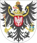 | Blazon | Gules, an eagle argent, armed, crowned and beaked or, langued argent |