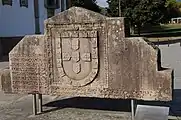 Portuguese shield in an early 14th-century commemorative stone at Ponte de Lima