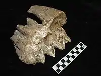 The Coats-Hines-Litchy site is located east of I-65 near CoolSprings Galleria in Williamson County, Tennessee. The site was initially recorded in 1977 when several large bones were identified during landscaping at the Crockett Springs Golf Course (now the Nashville Golf and Athletic Club). Salvage work by staff from the Tennessee Division of Archaeology recovered the partial skeleton of a single mature female mastodon (“mastodon A”) from along a small stream drainage. No description of this excavation or the skeletal material was ever published, and the area that contained the remains was subsequently destroyed by earthmoving along the 13th hole of the golf course.[6] In 1994, construction of a subdivision just west of the golf course by the company Hines Interest LP resulted in identification of a well-preserved bone bed of Pleistocene-aged faunal material. The bone bed was situated 20 metres (65 feet 7+1⁄2 inches) west of the original mastodon find along a deeply incised portion of the same stream channel, approximately 2 metres (6 feet 6+1⁄2 inches) below ground surface. Salvage excavations resulted in the identification of several late ice age species, including horse, deer, muskrat, and the partial, disarticulated remains of a young male mastodon (“mastodon B”) [1] The remains of a third mastodon (“mastodon C”) were identified eroding from the bank line approximately 50 m west of mastodon B, but were not excavated. The site was assigned state number 40WM31, and named “Coats-Hines” in honor of Tennessee Division of Archaeology staff member Patricia Coats, who participated in the excavation of mastodon A, and the Hines corporation, which facilitated the 1994 salvage work. The site name was expanded to add "Litchy" in 2012 in honor of the landowner. Following excavations, the area that contained mastodon B was backfilled and incorporated into the backyard of a single-family home.[3]