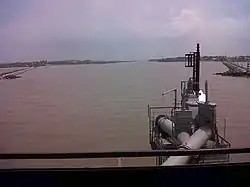 ![]() Approaching the mouth of the river from the Gulf of Mexico. The city of Coatzacoalcos is to starboard, and Allende to port. (2011) | |