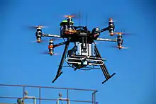 Multirotor type unmanned aerial vehicles exist in numerous configurations including duocopter,[5] tricopter, quadcopter, hexacopter and octocopter. All of them can be upgraded to coaxial configuration in order to bring more stability and flight time while allowing carrying much more payload without gaining too much weight. Indeed, coaxial multirotors are made by having each arm carrying two motors facing in opposite directions (one up and one down). Therefore, it is possible to have an octorotor looking like a quadcopter thanks to coaxial configuration. Special Duocopters are characterised by two motors aligned in a vertical axis. The control is performed by the appropriate acceleration of a single rotor blade for targeted thrust generation during revolution. Having more lifting power for a greater payload explains why coaxial multirotors are preferred for all professional commercial application of UAS.[6]