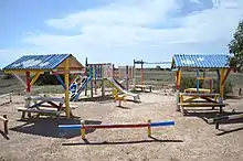 The Eyre Telegraph Station, located 49 kilometres (30 mi) south of the settlement, operated from 1897 until 1929. Unlike most others, it remained in a relatively well-preserved state due to its isolation and protection from the Southern Ocean, and in 1976, when the State Government created the Nuytsland Nature Reserve, the facility was converted into a wildlife observatory, known as Eyre Bird Observatory, which opened in 1978. The observatory offers basic camping facilities. Over 230 species of birds have been spotted there.[4]