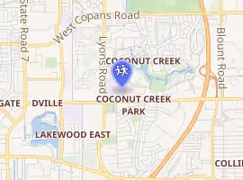 - "Zoning Map" (PDF). Coconut Creek, Florida. Retrieved May 9, 2020. - Compare to school attendance boundary maps.