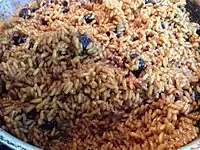 Coconut rice is a dish prepared by soaking white rice in coconut milk or cooking it with coconut flakes.[1] As both the coconut and the rice-plant are commonly found in the tropics all-around the world, coconut rice too is found in many cultures throughout the world, spanning across the equator from the Indian subcontinent, Southeast Asia, South America, Central America, East Africa, the Caribbean and Oceania.