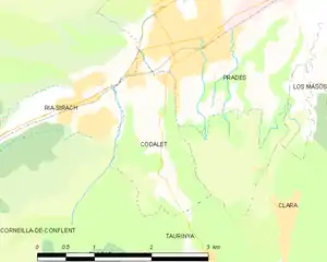 Codalet is located in the canton of Les Pyrénées catalanes and in the arrondissement of Prades.