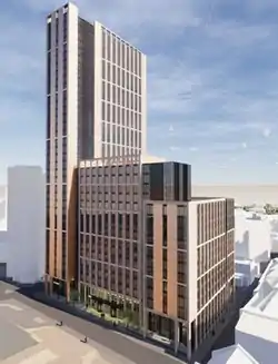 Code Sheffield is an under-construction skyscraper[1] located at the junction of Wellington Street and Rockingham Street in Sheffield, South Yorkshire. Construction commenced in March 2022,[2] as part of the Heart of the City 2 redevelopment of this area of the city centre. With a planned height of 117 metres (384 ft) once completed, Code Sheffield will overtake both the St Paul's Tower as the tallest building in Sheffield and Altus House in Leeds as the tallest building in Yorkshire.[2]