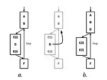 In computer science, code motion, also known as code hoisting, code sinking, loop-invariant code motion, or code factoring, is a blanket term for any process that moves code within a program for performance or size benefits, and is a common optimization performed in most optimizing compilers. It can be difficult to differentiate between different types of code motion, due to the inconsistent meaning of the terms surrounding it.