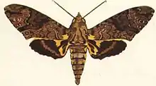 The larvae feed on Lantana camara, Fraxinus floribunda, Clerodendrum heterophyllum, Dahlia variabilis and Duranta plumieri.[2] Adults are pollinators of some species of baobab in Madagascar, including Adansonia za.[3]