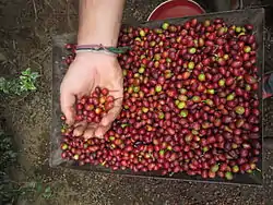 The main growing region of Robusta is the Bukoba area of the Kagera Region.[2] Two new species were found recently in Tanzania's Eastern Arc Mountains, Coffea bridsoniae and C. kihansiensis.[3] Harvest time is traditionally October to February. Ninety percent of the nation's coffee farms are smallholder, with the remainder being plantations. The industry estimates are approximately 270,000 personnel involved in the coffee industry.