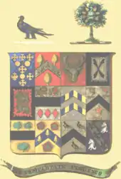 ![]() Arms of Coffin of Portledge, Alwington, Devon: Azure, three bezants between eight crosses crosslet or | |