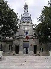 The mansion known as Otard La Grange is purchased by the commune in 1889, the Hotel de Ville was installed there in 1892. In the meantime architect Alfred Leroux redeveloped the building and added a bell tower and monumental staircase, whilst landscape architect Édouard André redesigned the park into a sunken garden and added several water features.