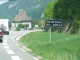 The Col de Couz is a pass located near the village of Saint-Jean-de-Couz, peaking at 624 m above sea level.[1] It is located at equal distances from the ends of the valley of Couz. It connects Chambéry north-east to Les Echelles southwest side. It is crossed by the departmental road 1006. Mount Beauvoir is located west of the Col de Couz.