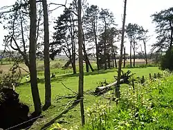 Little remains at Colbren of the station or the junction; although surviving conifers indicate the alignment of the track of the former railway.