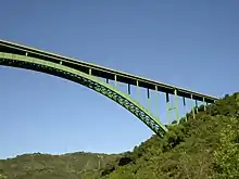 It is currently the highest arch bridge in the U.S. state of California and among the highest bridges in the United States. At its highest point, the bridge deck is 400 ft (122 m) above the canyon floor.[1][2] The bridge is also the largest steel arch bridge in the state.[3] It was determined to be eligible for the National Register of Historic Places with exceptional significance.[3]