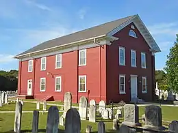 The historic two-story red brick building located at 780 Seashore Road in the Cold Spring section of Lower Township, in Cape May County, New Jersey. The current church building, known as "Old Brick", was constructed in 1823[3] by Thomas H. Hughes, who was also the architect of Congress Hall in Cape May, New Jersey. This red brick building replaced a frame and shingle church erected in 1764, which itself replaced a 1714 log meetinghouse.[4] The church's cemetery, Cold Spring Presbyterian Cemetery, is the site of a 1742 grave (that of Sarah Eldridge Spicer) and of the most Mayflower descendants anywhere outside Massachusetts. The church was added to the National Register of Historic Places on June 14, 1991 for its significance in settlement, architecture, religion, and government.[5]