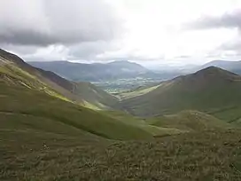 ![]() Coledale seen from Coledale Hause with the vale of Keswick and the fell Blencathra in the background. |