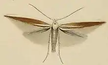 The wingspan is about 12 millimetres (0.47 in). Adults have brownish forewings with a white costal streak. They are on wing from June to August in western Europe.[3]