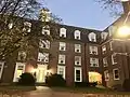 The College Green of Ohio University is the university's central quadrangle lawn which saw the first academic buildings in the Northwest Territory.[1] The green roughly sits aligned to the cardinal directions, with Manasseh Cutler Hall facing true north. The Green, at the heart of the Athens campus, is surrounded by administrative, academic, and library buildings.[2] For most of the nineteenth and twentieth century, it saw small memorials and wartime monuments dedicated in remembrance of the people involved in those centuries' great conflicts.[3] The green is the centerpiece of a historic district listed on the National Register of Historic Places in 1979, encompassing the green, flanking buildings, and other nearby campus buildings. Cutler Hall, home of the President's office, and Wilson Hall, that of the College of Arts & Sciences, adorn the Green.