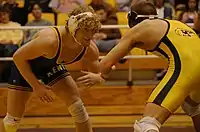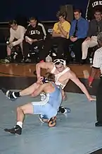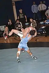 ![]() Collegiate wrestling, like freestyle wrestling, had its origins in catch-as-catch-can wrestling but by the 20th century became distinctly American. | |
