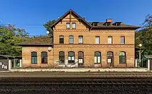 The first section of the Cologne–Aachen line, which was opened on 2 August 1839, ran to Müngersdorf, with the terminus of the line at Belvedere station (line-km 7.0) until the opening of Lövenich station. For excursion guests from downtown Cologne, a small station building that housed a restaurant was built on a hill north of the cutting through which the line ran. With the extension of the line to Aachen, Müngersdorf station, the “Belvedere house”, became less and less important. The station was never very important for operations and was closed before 1892. Today there are no operating facilities at the station. The station building, which has meanwhile been used as a residential building, still exists and is listed as the "oldest station in Germany in its original form" in the Cologne heritage list.