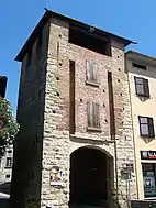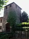 - Porta Rocca, the fortification to the north towards Bergamo and seat of the municipality of Cologno al Serio.[4] The name derives from a fort erected at the end of the thirteenth Century along the outer perimeter, of which it is an integral part. Only the lower part of the tower has maintained its original character, while the upper part has been rebuilt over the years. These architectural changes are due to the continuous and repeated damage caused by numerous war events that have marked the history of Cologno. This door also has a coat of arms depicting the Moioli family, who in the seventeenth Century owned the castle donated to him by the community of Cologno al Serio in recognition of their contribution to the defence of the town [12]