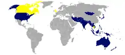 ![]() Current (blue) and former (yellow) members of the Colombo Plan. | |