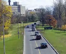 Colonel By Drive (French: Promenade Colonel By) is an 8.1 km (5.0 mi) long scenic parkway in Ottawa, Ontario, Canada named after Colonel John By. It runs along the Rideau Canal from the end of Sussex Drive at Rideau Street. It then continues 8 km (5.0 mi) south and west to Hog's Back Road, winding through several residential areas and going past Dow's Lake and Carleton University. To the north, the road passes Department of National Defence Headquarters, the Ottawa Congress Centre and the Westin Hotel before ending at Wellington Street and Rideau Street. The rear door of the Government Conference Centre can be accessed from the street as well, after it passes under the Mackenzie King Bridge. It is named for Lieutenant-Colonel John By, who built the Rideau Canal. The winding two-lane road has a speed limit of 60 km/h (37 mph).
