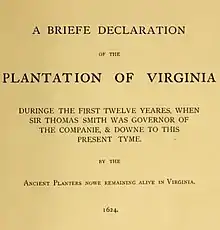 During this time, perhaps 5000 Virginians died of disease or were killed in the Indian massacre of 1622.[22] | ||