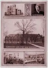 A typical day for female students in 1851 started at 6 a.m. with a morning walk, followed by worship in the chapel. They attended classes until late afternoon and then wrote a daily composition. After they studied and did chores, the students attended a Bible lecture every evening. They studied arithmetic, ancient history, grammar, ancient geography, philosophy, the five books of Moses, and composition.[6] The college purchased the estate of Dr. James Bennett and formally dedicated the buildings and grounds as the Christian College campus in 1852.[7] By 1856, there were 150 students, including 85 boarders.