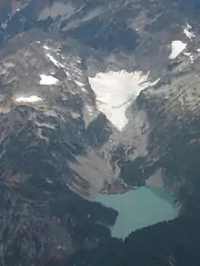 Columbia Glacier is a glacier located in the Henry M. Jackson Wilderness in the U.S. state of Washington. It descends from 5,600 ft (1,700 m) to 4,700 ft (1,400 m) above sea level. It is surrounded by Columbia Peak, Monte Cristo Peak, and Kyes Peak and is a source of water for Blanca Lake and Troublesome Creek, a tributary of the North Fork Skykomish River.