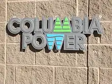 Columbia Power logo on the headquarters building, Castlegar British Columbia