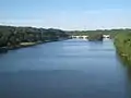 Columbia Railroad Bridge, also known as "Columbia Bridge", is a 1920 concrete arch bridge in Philadelphia, Pennsylvania, that carries CSX Trenton Subdivision rail lines over the Schuylkill River.[6] Located in Fairmount Park, upstream of the Pennsylvania Railroad Connecting Bridge, it is the third railroad bridge at the site. Near its east abutment are the Schuylkill Grandstand (for viewing rowing regattas) and the John B. Kelly statue.