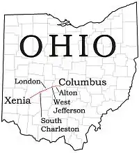 The Columbus and Xenia Railroad (C&X) was chartered on March 12, 1844.[2] Among its early leaders was William Dennison, the future Governor of Ohio.[3][4]