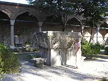 The Forum of Leo was the last forum to be built in a Roman capital city.[3] Its exact location is uncertain.[3] According to a 15th-century Latin translation of a work by Manuel Chrysoloras, it stood "on the hill of Byzantium, to the right of the temple of Peace" (super Byzantiorum tumulo ad dexteram templi Pacis).[3] The templum Pacis was the church of Hagia Irene, and the "hill of Byzantium" the acropolis of the pre-Constantinian Roman city of Byzantium.[3] Here, according to John Malalas, were ancient temples dedicated to Helios, Artemis, and Aphrodite and later used for other purposes.[3] Subsequently, the area was the site of the Topkapı Palace.[3] The Chronicon Paschale states that the temple of Aphrodite was opposite the theatre.[3] According to Dark and Harris, this means the Second Courtyard of the Topkapı complex is likely the site of the Forum of Leo.[3] Archaeological excavations there have revealed the remains of an asiled basilica with a narthex and a polygonal apse.[3] There may also have been an atrium.[3] The basilica was a church and may have been built in 471 as an original part of the forum.[3] It may have been the same church of Saints Peter and Paul that a hundred years later the augustus Justin II had (re)built in 571.[3]
