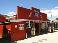 Colville township grew following the construction of a general store with a motor garage alongside.[3] This was built by Richard (Dick) Goudie, a local man whose grandparents had settled in Cabbage Bay. Dick Goudie later ran a taxi service from the town, being the first to drive a motor vehicle across the new bridge at Papa Aroha which opened up the northern peninsula from Coromandel. Fossicking for semi-precious stones such as carnelian and for kauri gum are popular activities among tourists visiting the town.[4]