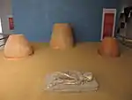 | Funerary offering found in the archaeological. | Female head elaborate in stucco. | Mascaron in stucco adorning the temples | Mascaron in stucco. | Mascaron in stucco adorning the temples. | Mayan head with skull deformation. | Sting ray tail, engraved, which was part of the funerary equipment of Aj Pakal Tahn. | |