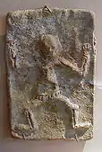 Comalcalco was also an important centre of clay figurine production and commerce between 600 and 1000 CE[8] In and around the site, archaeologists have found identical clay moulds and figures, as well as tools, pit kilns and dumping grounds, indicating standardized mass production. Figurines found on Jaina Island, approximately 350 km (220 mi) away on the Yucatán Peninsula, use clay with the same chemical composition as those of Comalcalco. Unlike the funerary objects used on Jaina Island, the figurines of Comalcalco seemed to be meant for daily use. Certain representations appear more frequently in the ceremonial core (rulers, dwarfs, articulated figures), while others (women) are more common in residential areas.[9]