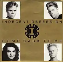 "Come Back to Me" is a song by Australian band Indecent Obsession. The song was released as the third single from their debut album Spoken Words (1989). The song peaked at number 40 on the Australian ARIA Chart, but was a number-one hit in Hong Kong. They promoted the song, supporting Debbie Gibson on her Australian tour.[1]