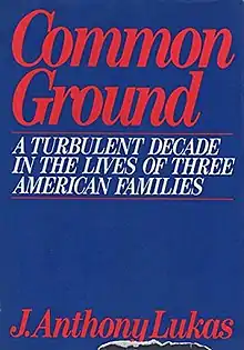 Common Ground: A Turbulent Decade in the Lives of Three American Families is a nonfiction book by J. Anthony Lukas, published by Alfred A. Knopf in 1985, that examines race relations in Boston, Massachusetts, through the prism of desegregation busing.[1] It received the Pulitzer Prize for General Nonfiction,[2] the National Book Award for Nonfiction,[3] and the National Book Critics Circle Award.[4] The book traces the history of three families: the working-class African-American Twymons, the working-class Irish McGoffs, and the middle-class Yankee Divers. It gives brief genealogical histories of each families, focusing on how the events they went through illuminated Boston history, before narrowing its focus to the racial tension of the 1960s and the 1970s. Through their stories, Common Ground focuses on racial and class conflicts in two Boston neighborhoods: the working-class Irish-American enclave of Charlestown and the uneasily integrated South End.