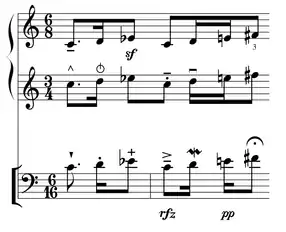 (c4 e tenuto accent rfz) (d4 s mordent) (en4 s pp) (fs4 e fermata))))